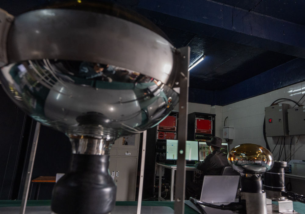 9月20日,“拉索”工作人員在一臺(tái)廣角切倫科夫望遠(yuǎn)鏡上檢查成像部件。新華社記者 金立旺 攝