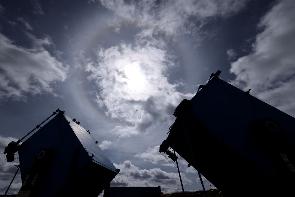 2023年4月22日,廣角切倫科夫望遠(yuǎn)鏡上空出現(xiàn)日暈。新華社記者 金立旺 攝