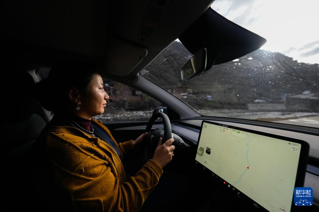 達(dá)瓦卓瑪開車去附近的郵政物流快遞服務(wù)站郵寄貨品(11月4日攝)。新華社記者 沈伯韓 攝