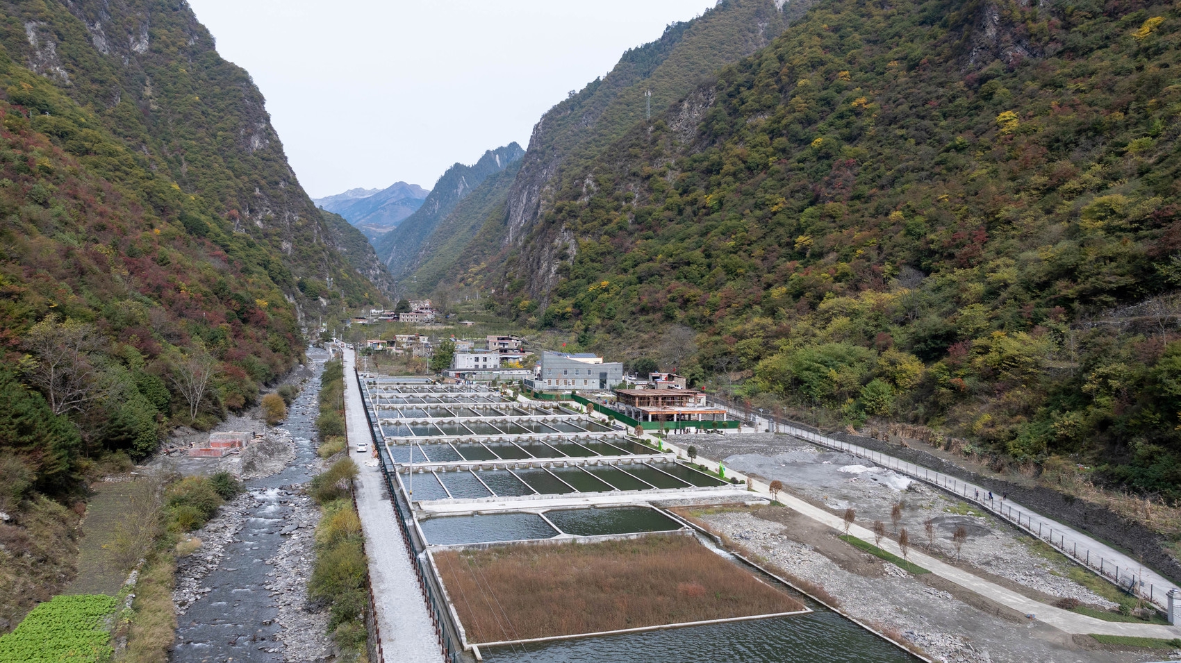 50個(gè)長(zhǎng)方形養(yǎng)殖池依次排列,清澈的冷泉水在其中潺潺流動(dòng),不時(shí)有魚兒躍出水面。11月7日一早,“萬(wàn)千氣象看四川”四季度集中采訪活動(dòng)報(bào)道組來(lái)到理縣薛城鎮(zhèn)甲米村,在海拔2000米的地方,見到了初具規(guī)模的高原特色冷水魚產(chǎn)業(yè)基地,這也是阿壩州第一家規(guī)?;渌~養(yǎng)殖基地。