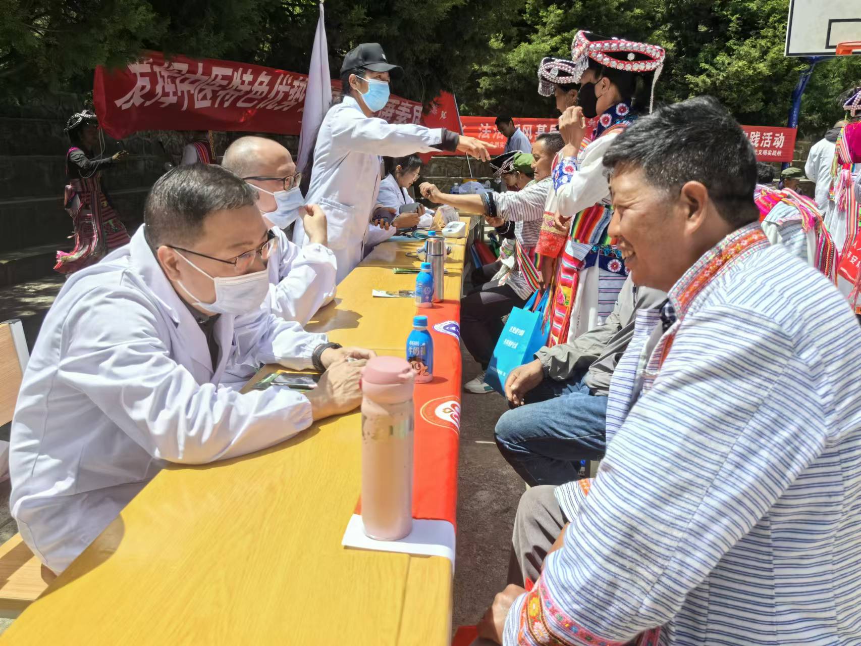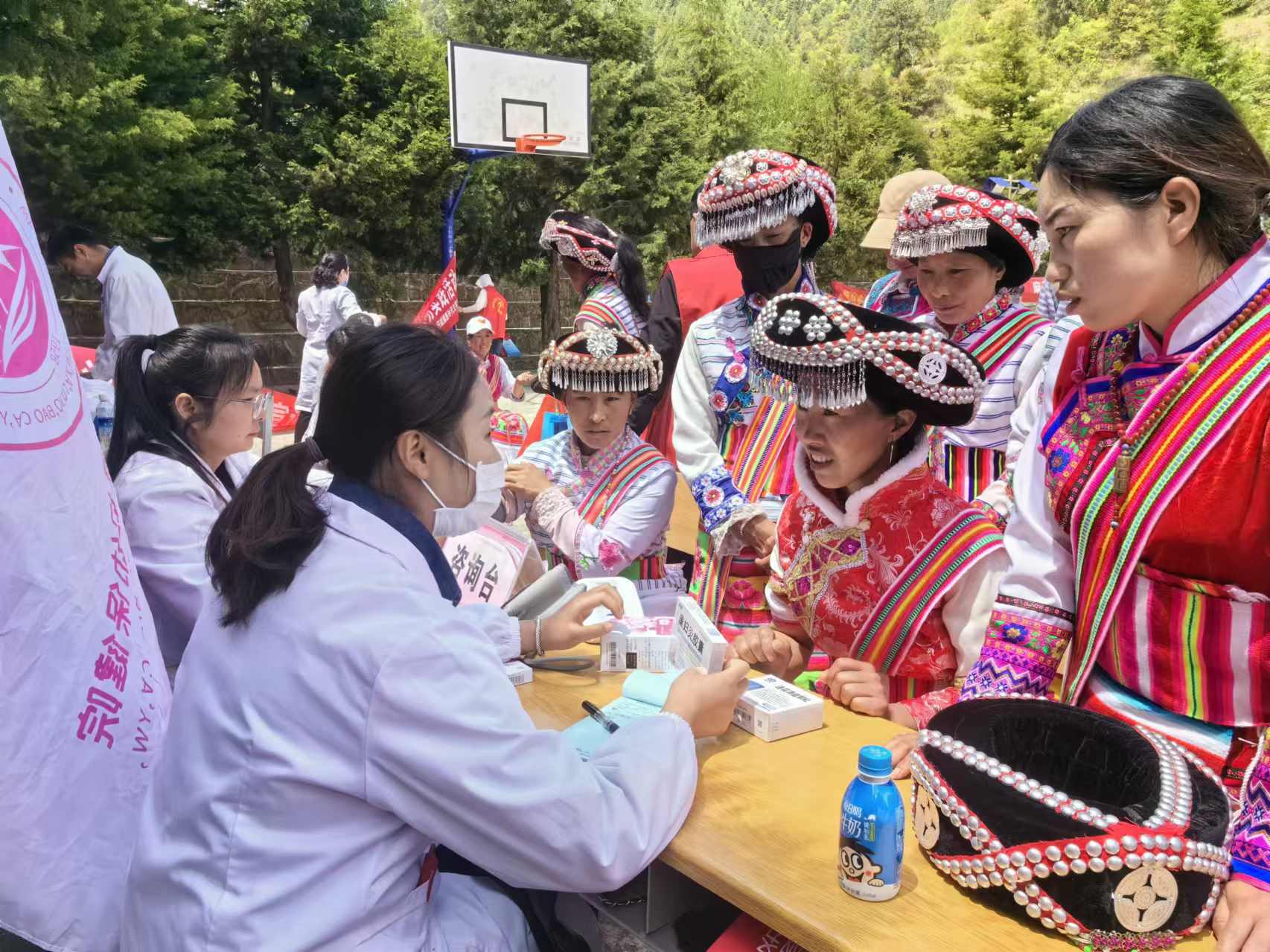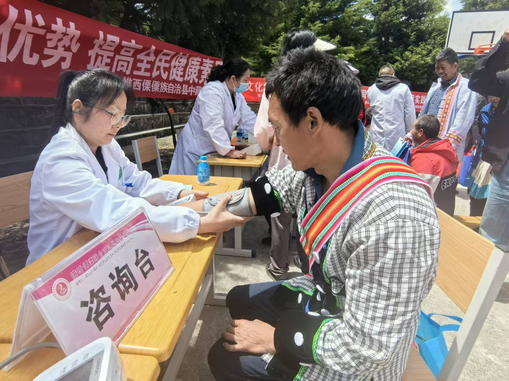 今年以來,由上海幫扶專家、縣人民醫(yī)院醫(yī)師組成的維西縣新時代文明實踐中心先鋒醫(yī)療隊多次深入村組開展巡回醫(yī)療志愿服務活動,為群眾提供心電圖等常規(guī)體檢以及多發(fā)病、慢性病等病癥現(xiàn)場診療和咨詢服務,還免費向群眾發(fā)放藥品,切實解決了農(nóng)村群眾看病就醫(yī)難題。圖為上海專家志愿者向傈僳族群眾免費發(fā)放藥品。
