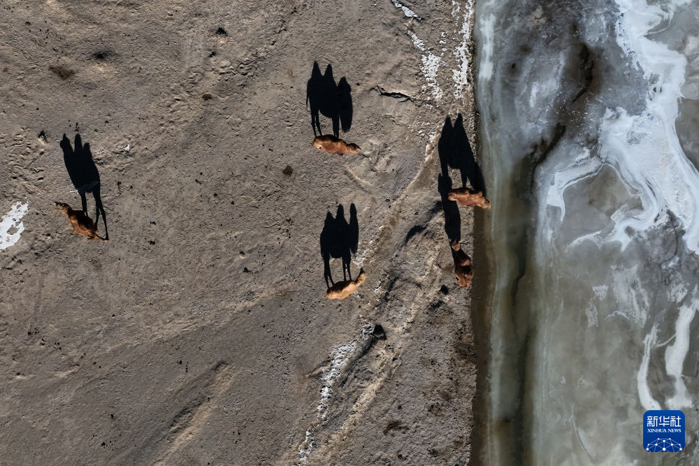 11月27日,在青海省海西蒙古族藏族自治州烏蘭縣,幾只駱駝?wù)谛蓓o人機照片)。新華社記者 張龍 攝