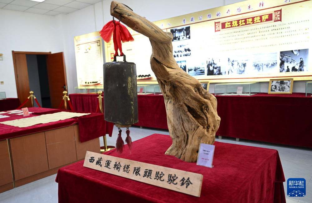 展館眾多陳列實物中,一個銹跡斑斑的駝鈴吸引著游客的目光,這是跟隨青藏駝隊進藏的青藏駝隊頭駝駝鈴。張存虎介紹,這個駝鈴不僅是整個青藏駝隊的“定盤星”,更是整個運輸隊伍的心理支撐。“駝工們常說,只要能聽到頭駝的駝鈴聲,就知道前進的隊伍沒有散,進藏的方向沒有變?!睆埓婊⒄f。