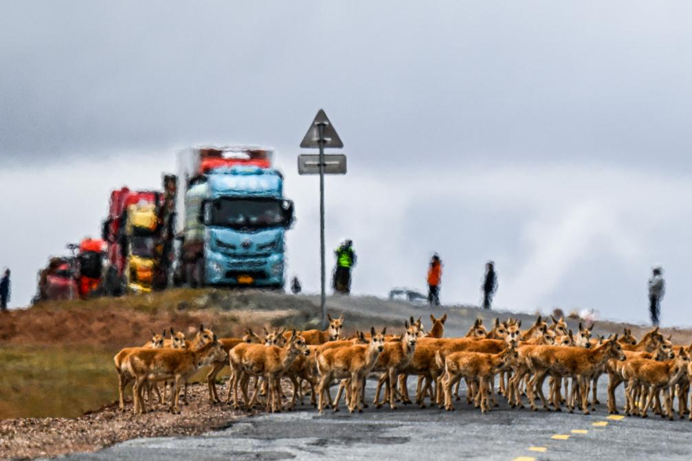 70年過去,青藏公路與可可西里這片土地早已“融為一體”。青藏公路3001、3002公里處,是可可西里藏羚羊遷徙的重要通道。每到藏羚羊遷徙產(chǎn)仔季,在可可西里工作人員的指揮下,來往車輛會在這里自覺排成長龍,在遠處默默等待,為“高原精靈”讓路。