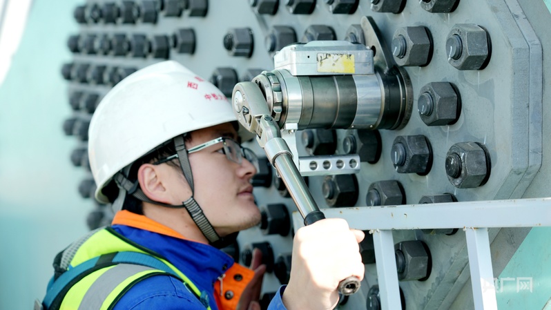何映正在檢測螺栓扭矩。央廣網(wǎng)記者 汪曉青 攝