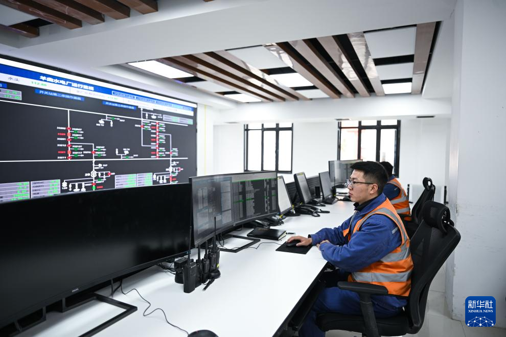 12月24日,羊曲水電站工作人員在中控室內值守。新華社記者 解統(tǒng)強 攝