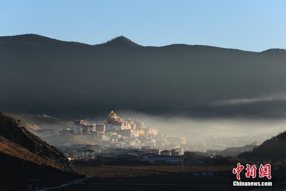 12月24日,晨霧中的松贊林寺景觀。地處云南西北部的迪慶藏族自治州香格里拉市,是云南熱門旅游地,也是世人向往的世外桃源。近年來,該州圍繞“冬看日照金山嬉雪觀鳥”的主題,不斷豐富業(yè)態(tài)服務(wù)好游客,推動(dòng)冰雪世界“冷資源”變?yōu)椤盁峤?jīng)濟(jì)”。中新社記者 黃興鴻 攝