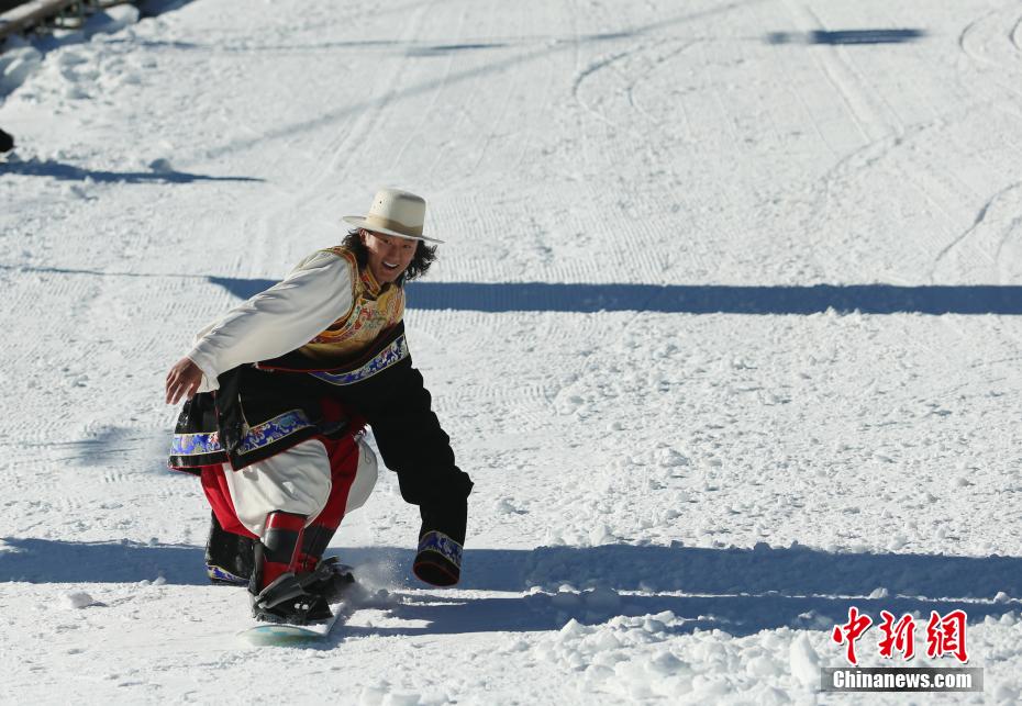 12月24日,藏族小伙在香格里拉體驗(yàn)滑雪。地處云南西北部的迪慶藏族自治州香格里拉市,是云南熱門旅游地,也是世人向往的世外桃源。近年來,該州圍繞“冬看日照金山嬉雪觀鳥”的主題,不斷豐富業(yè)態(tài)服務(wù)好游客,推動(dòng)冰雪世界“冷資源”變?yōu)椤盁峤?jīng)濟(jì)”。中新社記者 黃興鴻 攝