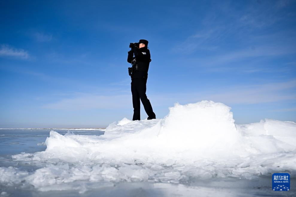 1月9日,剛察縣青海湖派出所民警喬勝云在巡護(hù)青海湖。新華社記者 李寧 攝