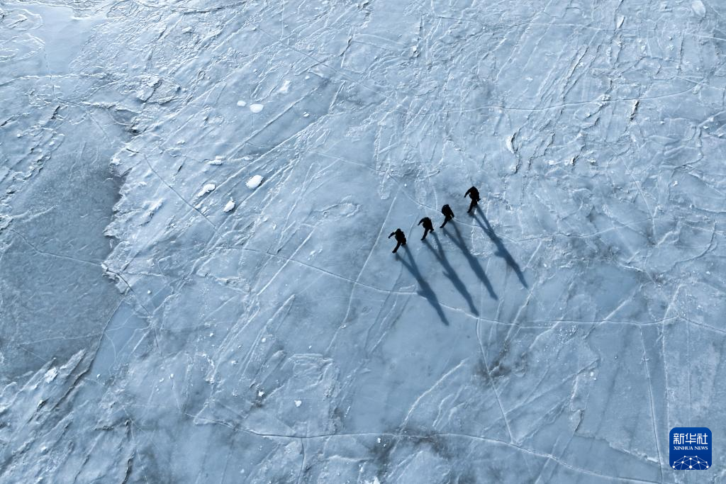 1月9日,剛察縣青海湖派出所民警在巡護(hù)青海湖(無(wú)人機(jī)照片)。新華社記者 張龍 攝