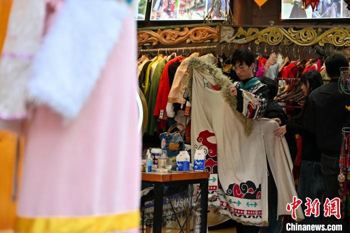 3月1日,游客在一家旅拍店內(nèi)換裝。中新社記者 李嘉嫻 攝
