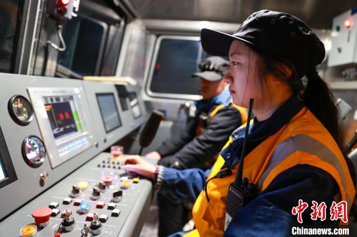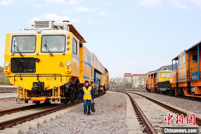 4月27日,中國鐵路青藏集團有限公司西寧工務(wù)機械段養(yǎng)路機械駕駛員俞慶操作養(yǎng)路設(shè)備。中新社記者 薛蒂 攝