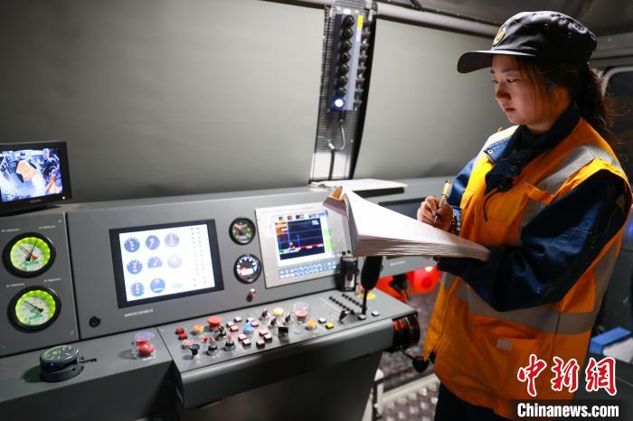 4月27日,中國鐵路青藏集團有限公司西寧工務(wù)機械段養(yǎng)路機械駕駛員俞慶作業(yè)前填寫工作日志。中新社記者 薛蒂 攝