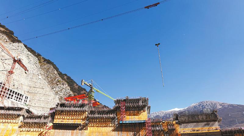 水電站最大壩高217米,混凝土澆筑總量達(dá)251萬立方米。葉巴灘水電站場址所在地晝夜溫差明顯,極端氣溫條件下,會出現(xiàn)最高溫度達(dá)37.1攝氏度,最低溫度達(dá)零下23.5攝氏度的氣溫狀況。這種氣候條件下,混凝土容易產(chǎn)生溫度裂縫。項(xiàng)目團(tuán)隊(duì)通過優(yōu)化施工組織實(shí)現(xiàn)轉(zhuǎn)倉無縫銜接,在國內(nèi)高海拔寒冷地區(qū)首次實(shí)現(xiàn)大壩混凝土全年連續(xù)澆筑。