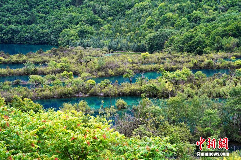 6月21日,四川省阿壩州九寨溝縣的九寨溝風景區(qū)風景如畫,吸引眾多游客觀光游玩。