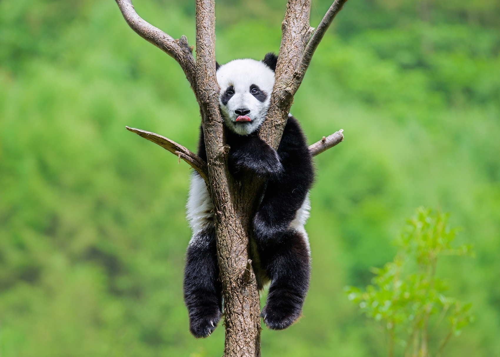 甲勿海·熊貓園里賣萌的熊貓。九寨溝縣委宣傳部供圖