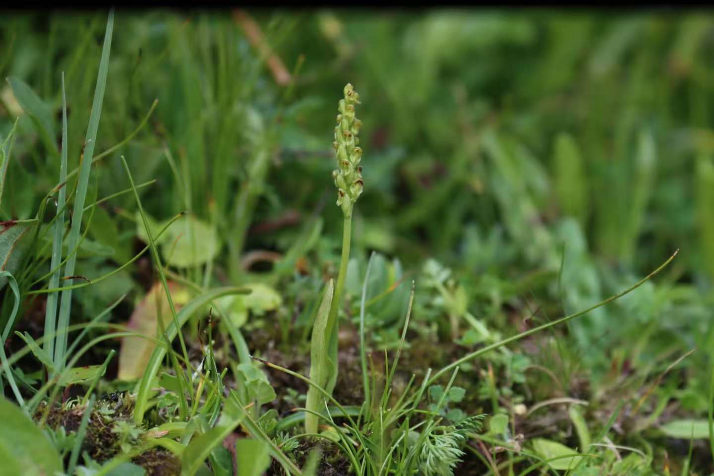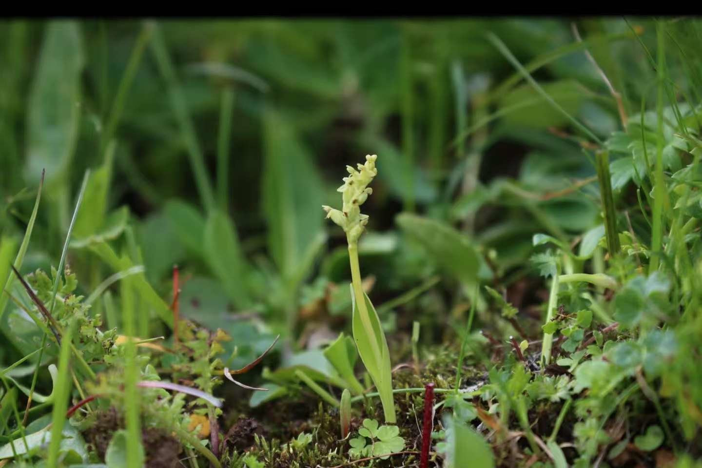 劍唇兜蕊蘭產(chǎn)青海、西藏、云南、四川(松潘)等地,模式標本采自錫金,花期8—9月,果期10月,總狀花序具3—10余朵花。這次在臥龍巴朗山海拔3700米高山草甸發(fā)現(xiàn)此兩種蘭科植物一新分布點,數(shù)量20株(叢)左右。目前,兩種植物均被世界自然保護聯(lián)盟瀕危物種紅色名錄列為近危物種,這意味著它們雖然不是“受威脅物種”,但可能在未來面臨瀕?;驕缃^風險。(圖片由四川臥龍國家級自然保護區(qū)管理局提供)
