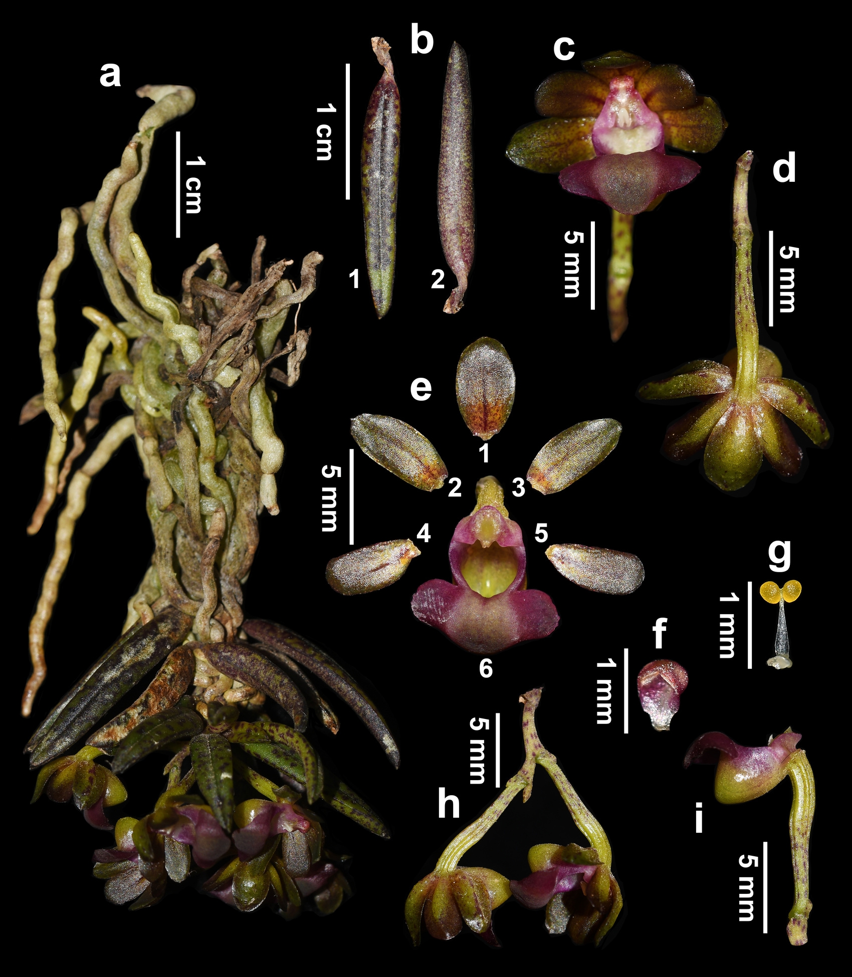 盆距蘭屬隸屬于蘭科樹蘭亞科指甲蘭亞族,全球約73種,是一類附生在熱帶和亞熱帶山地森林中樹木或巖石上的草本植物。該屬植物的唇瓣色彩斑斕、結(jié)構(gòu)精巧,具有較高的觀賞價值。根據(jù)分析,九寨溝盆距蘭隸屬于盆距蘭屬列葉組,該種的發(fā)現(xiàn)將列葉組的物種數(shù)量增加到16種,不僅豐富了物種圖譜,更對區(qū)域植物生態(tài)適應(yīng)機制研究具有重要價值。(圖片由中國科學(xué)院成都生物研究所提供)