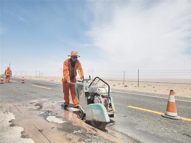 “你瞅這路面,夏天能曬到燙腳,冬天凍得全是縫子,水毀、冰凍說上來就上來?!倍∮谰S蹲下來,指著路面一塊剛補(bǔ)好的坑槽,指尖在新瀝青上劃了劃,“一年到頭,能好好補(bǔ)路的日子就七八個月,不跟老天爺搶時間,冬天車走這兒就懸了?!?/p>