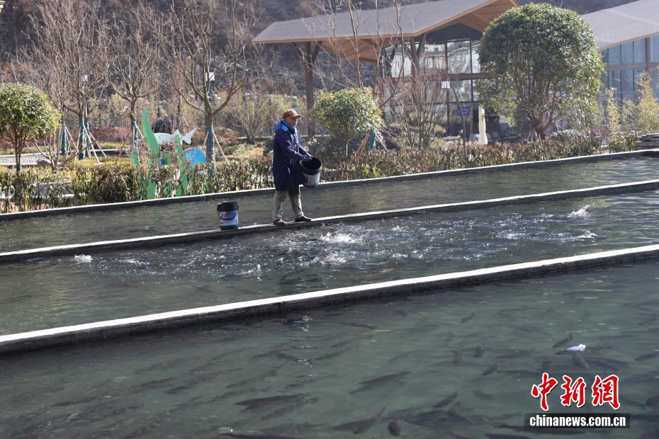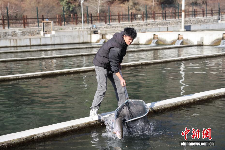 12月26日,位于四川省阿壩州理縣薛城鎮(zhèn)甲米村的高原特色冷水魚養(yǎng)殖基地內(nèi),工作人員進行喂料作業(yè)。該基地處于海拔超2000米的孟屯河畔,水源來自高海拔地區(qū)的雪山融水,年均水溫9-10℃,目前養(yǎng)殖有鱒魚、黃河魚、雅魚等10萬余尾?;貙?yōu)良生態(tài)資源與現(xiàn)代養(yǎng)殖技術(shù)結(jié)合,通過“魚經(jīng)濟”發(fā)展,豐富業(yè)態(tài)、增加就業(yè)、農(nóng)旅融合壯大了該村集體經(jīng)濟,同時拓寬了村民增收致富渠道。