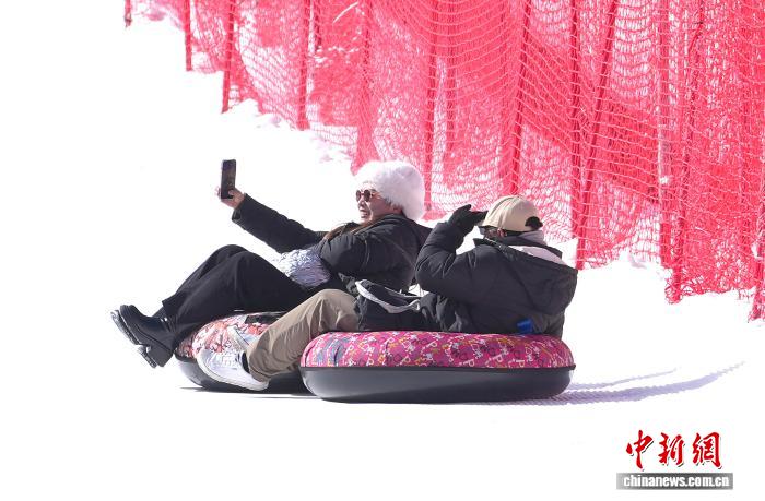 1月5日,四川阿壩畢棚溝,游客參與冰雪娛樂項(xiàng)目。中新社記者 安源 攝