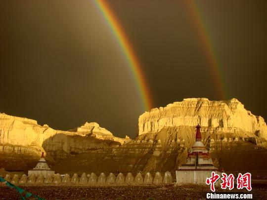 在雨后彩虹的映襯下,扎達土林顯得格外壯觀。阿里地區(qū)旅發(fā)委供圖