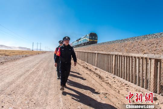 圖為拉薩鐵路公安處那曲車站派出所安多警務區(qū)民警開展線路治安巡查工作。 胡安鵬 攝