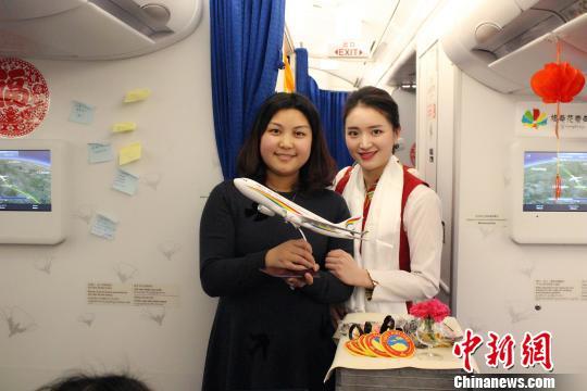 旅客收到了新年禮物飛機模型。 趙朗 攝