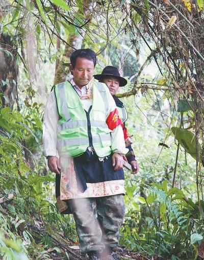 墨脫鎮(zhèn)巴日村護(hù)林員在密林中巡護(hù)。鄧建勝攝