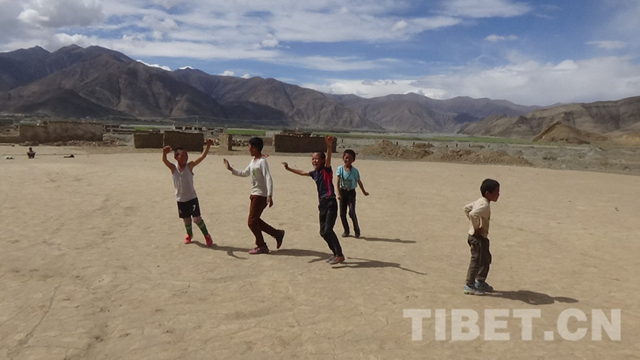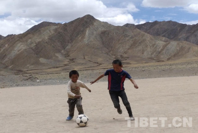 照片里個子最高的就是夏雜小小足球隊的隊長——貢嘎扎西,本以為他會是足球隊的前鋒,誰知他卻是防守的中堅力量——司職后衛(wèi)。今天他可解圍了不少威脅球。前排中間這個剛剛掉了右邊門牙的少年名叫多吉普拉,“別看我牙都沒長齊,但我是前鋒”。在剛剛結(jié)束的這場夏雜村足球賽中獨(dú)中兩元,他就是夏雜村足球隊未來的“C羅”。這里——4100米海拔的“魔鬼主場”就是他們的主場。