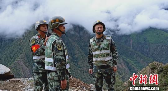 圖為8月1日,駐藏武警某部交通第三支隊(duì)養(yǎng)護(hù)五大隊(duì)的官兵在研究搶通方式。 楊繼明 攝