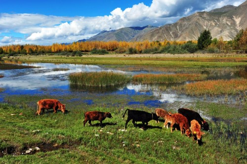 廣袤、高遠(yuǎn),這是許多人對西藏的第一印象。然而,在達(dá)孜,有一塊土地,卻有著煙雨江南的繾綣與綺麗。她就是金色池塘。
