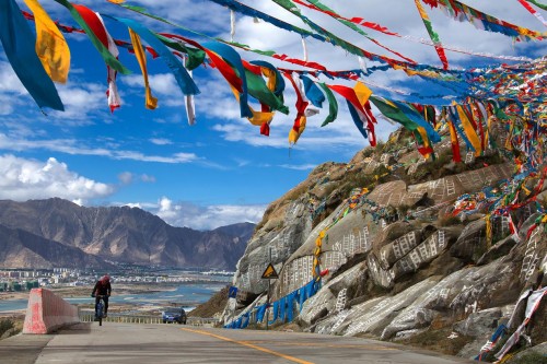 在西藏,從山到水,從建筑到自然,只要有風(fēng)到達(dá)的地方,就會有經(jīng)幡飄動的身影。藍(lán)天與白云,火焰與碧水,飄蕩在黃色大地上,伴隨著流云,講述著生活在這片雪域高原的百姓們對當(dāng)下的熱愛,對未來的企盼。而旅行者們,也總喜歡在這些飛揚(yáng)的經(jīng)幡邊駐足,合掌祈福,讓五彩經(jīng)幡傳遞心中美好的祝福與真摯的希望。