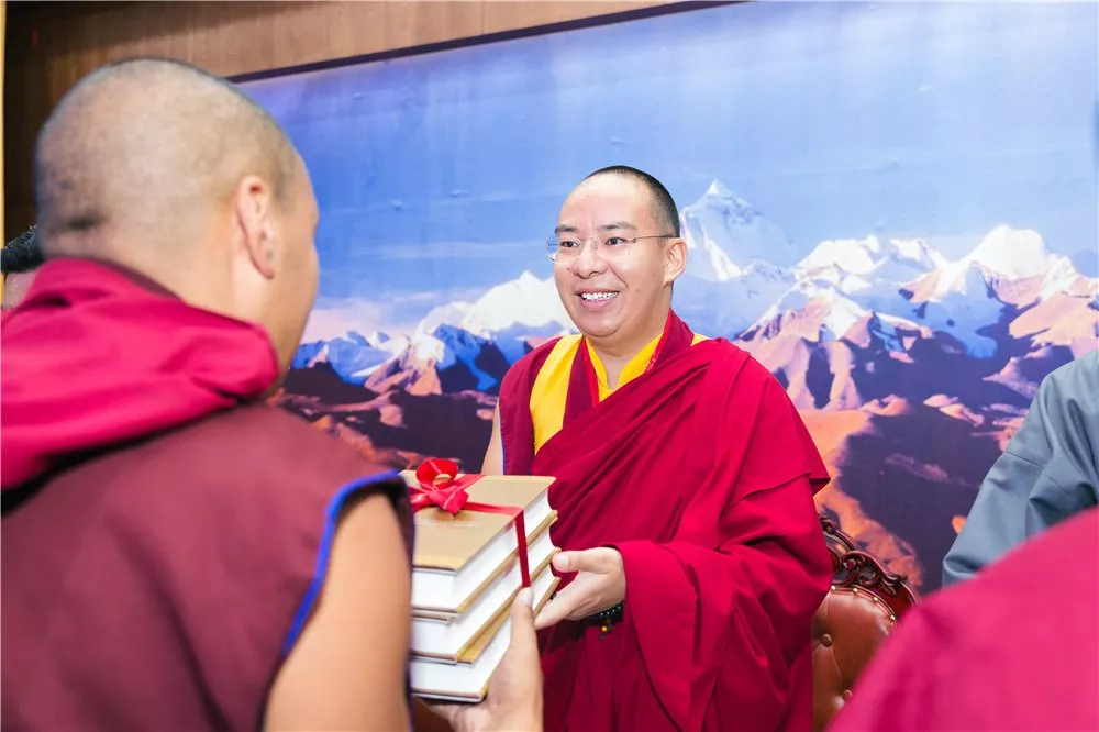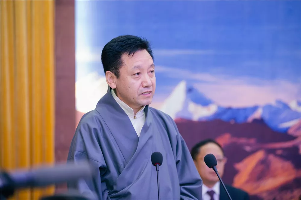 十一世班禪在致辭中指出,歷世班禪是藏傳佛教愛國愛教的一面旗幟。傳承和弘揚歷世班禪大師愛國愛教思想,對于推動藏傳佛教再弘期更好地與中國特色社會主義相適應(yīng),推動藏傳佛教更好地為維護國家統(tǒng)一,促進中華民族團結(jié),維護社會和諧穩(wěn)定服務(wù),具有非常重要的作用。《歷世班禪文集》歷史意義深遠(yuǎn)。以書刊為媒介符合時代潮流,能夠讓廣大的信教群眾,宗教界專家學(xué)者,特別是年輕一代更便捷,更系統(tǒng)學(xué)習(xí)歷世班禪愛國愛教思想的精髓。他希望藏傳佛教界人士,要以藏傳佛教歷代愛國愛教先賢大德為榜樣,感恩黨,感恩祖國,努力聞思顯密精要,為眾生帶來利樂。