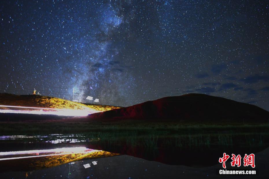 近日,從拉薩到阿里的國(guó)道318線、國(guó)道219,單程約1500公里的道路沿線上高原秋色如畫(huà)。圖為拉薩至阿里途中拍攝的星空倒影。江飛波 攝