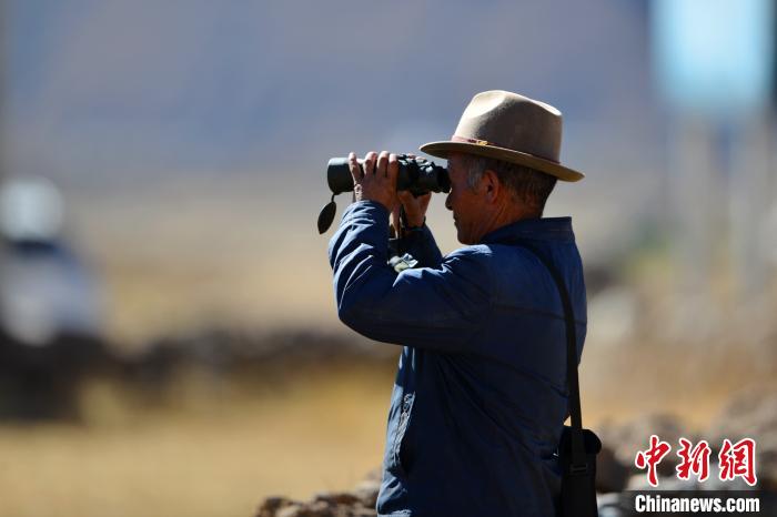 圖為西藏林周縣黑頸鶴巡護(hù)員旦增,每年入冬后他要負(fù)責(zé)轄區(qū)黑頸鶴安全過冬?!〗w波 攝