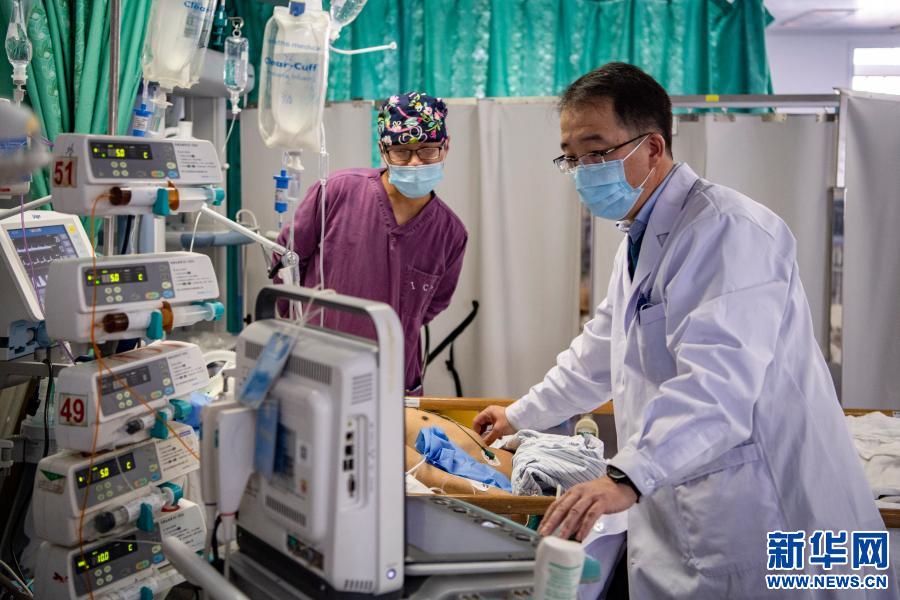 2月23日,北京援藏醫(yī)生王小亭(右)在西藏自治區(qū)人民醫(yī)院的重癥病房為危重病人做重癥超聲評估。新華社記者 孫非 攝