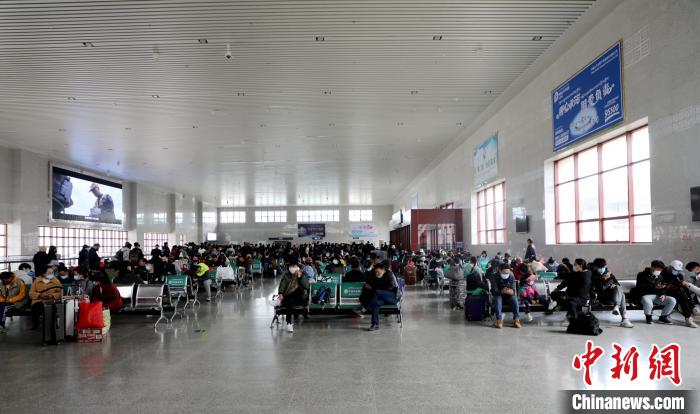 圖為1月12日,日喀則站旅客在候車室等候進站。日喀則站供圖