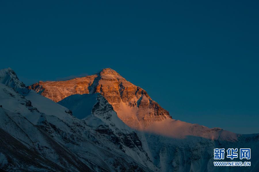 落日余暉灑在珠峰上(2020年4月22日攝)。新華社記者 孫非 攝