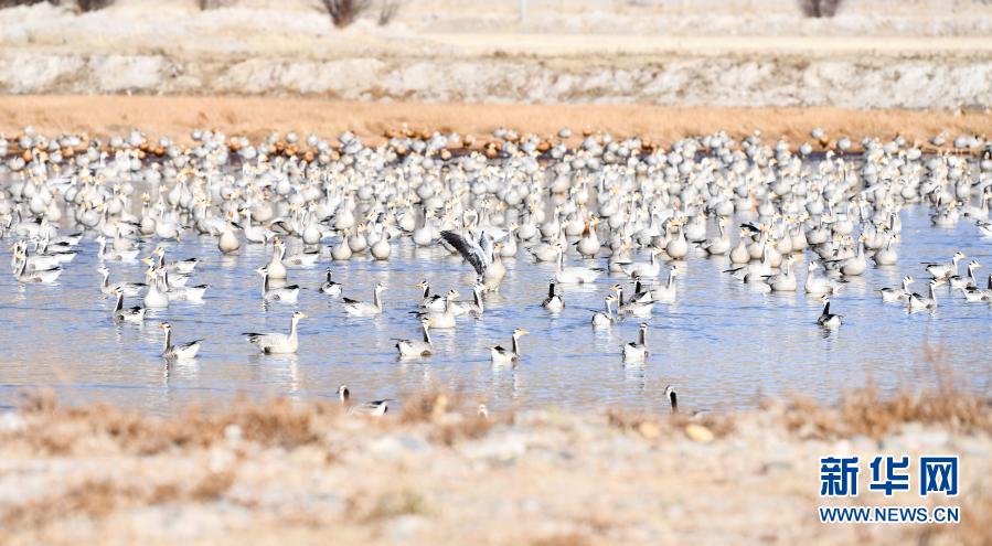 斑頭雁在拉薩市林周縣境內(nèi)的河道休憩(2020年11月20日攝)。新華社記者 晉美多吉 攝