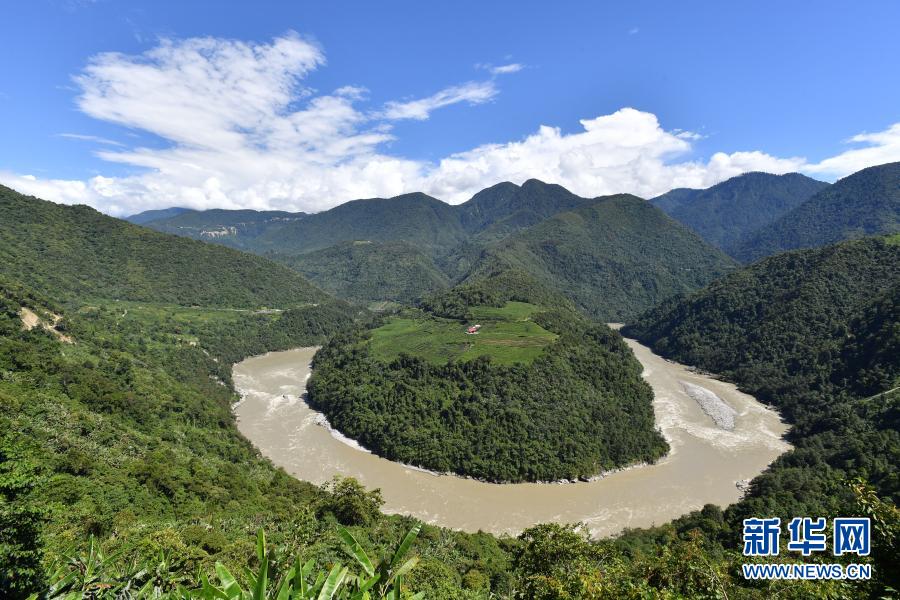 這是西藏林芝市墨脫縣境內(nèi)的雅魯藏布江果果塘大拐彎(2020年8月31日攝)。新華社記者 覺果 攝