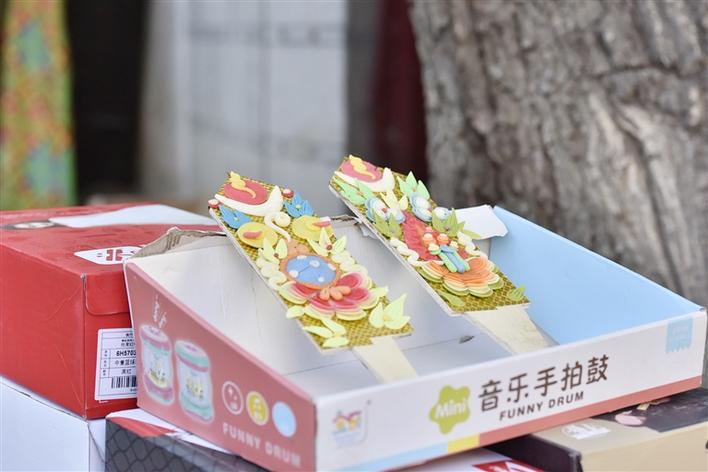 “有沒(méi)有和睦四瑞圖案的,給我看看?!薄昂绵??!钡曛饕贿叴蜷_(kāi)盒子,一邊告訴記者,自己家的酥油花一對(duì)賣(mài)100元,如果購(gòu)買(mǎi)者有需要也可接受定制,但要額外收取加工費(fèi)。