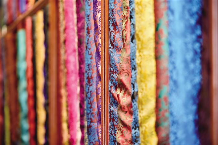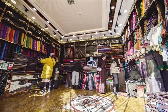 近日,記者來到位于神力時(shí)代廣場(chǎng)的666時(shí)尚藏裝店,剛進(jìn)店門就被眼前琳瑯滿目的布料所吸引,一匹匹布料整齊地?cái)[放在櫥窗里,讓人目不暇接。店內(nèi)的顧客也在挑選著面料、款式,而藏裝店的老板也在不停地為顧客介紹今年的各類新款,供顧客選擇。