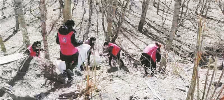在春節(jié)、藏歷新年來臨之際,為深入貫徹落實“拉薩市文明城市創(chuàng)建”工作精神,2月5日,由拉薩市婦聯(lián)黨組書記帶隊,帶領(lǐng)8名黨員干部職工深入達孜區(qū)唐嘎鄉(xiāng)窮達村與市婦聯(lián)4名駐村工作隊員聯(lián)合開展了“助力鄉(xiāng)村振興、從我做起從身邊做起”為主題的巾幗志愿服務活動。 活動中,市婦聯(lián)巾幗志愿服務隊成員投入到保護生態(tài)環(huán)境、清理白色垃圾、踐行鄉(xiāng)村振興行動當中。黨員干部職工和駐村點黨員干部職工兩人一組,手持裝垃圾的麻袋,每個人在林地中白色垃圾最多、最臟的角落清理垃圾,為整個林地的生態(tài)保護和環(huán)境衛(wèi)生作出了應有貢獻,更在引領(lǐng)基層廣大群眾深入踐行文明城市創(chuàng)建、保護生態(tài)環(huán)境、整治環(huán)境衛(wèi)生等方面充分發(fā)揮了黨員的先鋒模范帶頭作用。