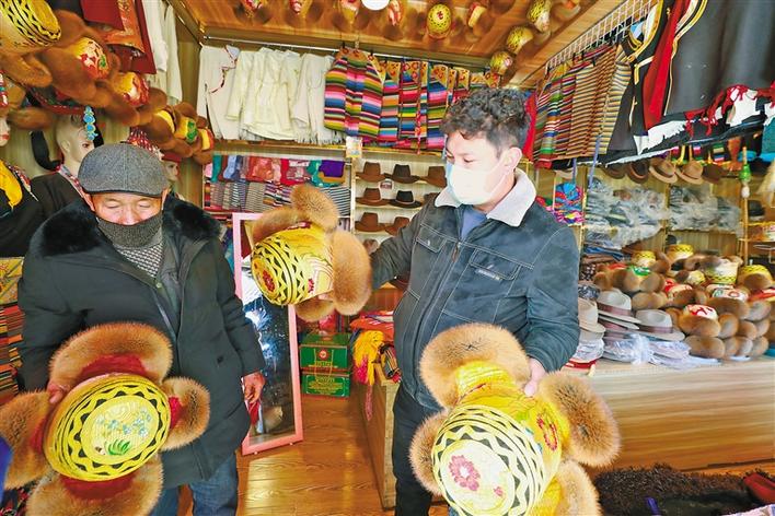 圖為正在為新年添置新衣(帽)的群眾。記者 巴桑旺姆 攝