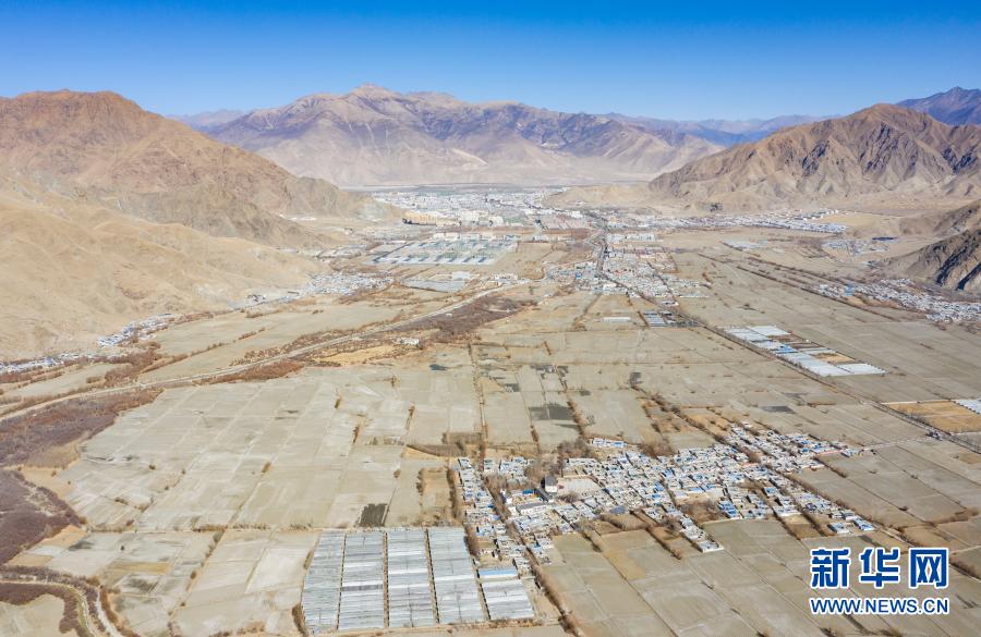 這是西藏山南市乃東區(qū)克松村社區(qū)農(nóng)業(yè)產(chǎn)業(yè)生產(chǎn)基地(2月9日攝,無人機(jī)照片)。新華社記者 普布扎西 攝
