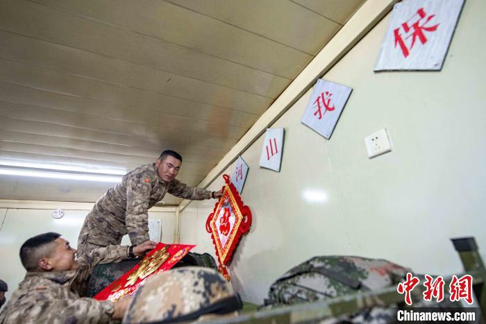 執(zhí)勤點(diǎn)上的官兵們,用“?!弊?、中國(guó)結(jié)將保溫方艙精心點(diǎn)綴裝飾,把祝福和期許默默留在心間?!耙患也粓A,萬(wàn)家團(tuán)圓?!瘪R雪建是官兵中唯一的零零后戰(zhàn)士,他表示:“一身戎裝接過(guò)送來(lái)的‘?!?,便是扛下了肩上的使命與責(zé)任,戰(zhàn)位上的新年就是邊關(guān)軍人的守望?!?/p>