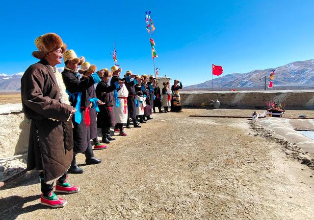 2月12日,西藏山南市貢嘎縣農(nóng)民在舉行新年活動(dòng)儀式。新華社記者 普布扎西 攝