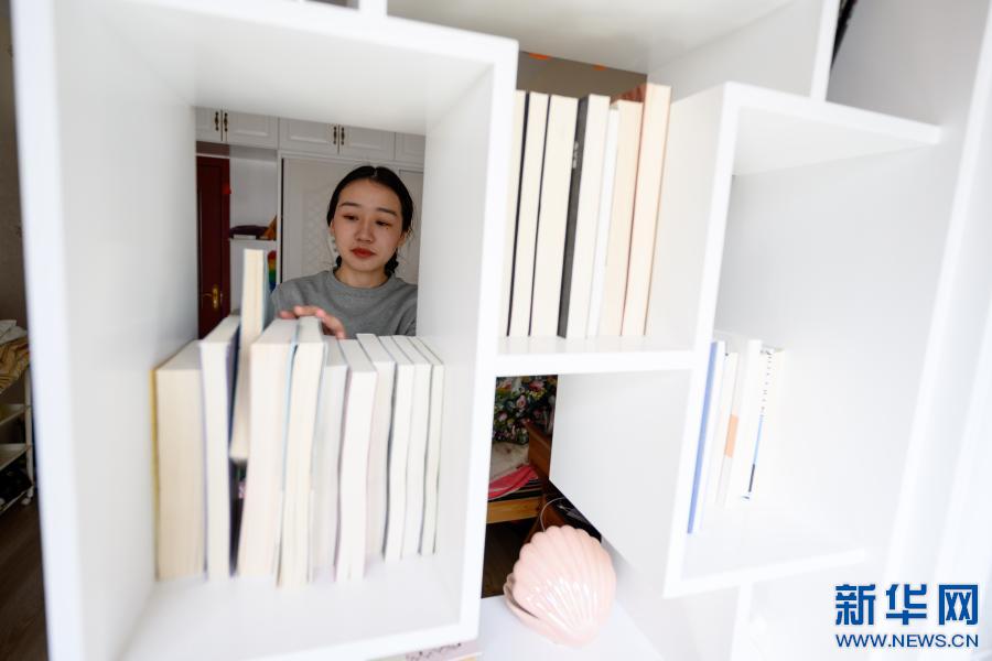 2月10日,在西藏自治區(qū)山南市乃東區(qū),格央在家中整理書架。書架上擺滿了她購買的各類文學(xué)書籍。新華社記者 劉金海 攝