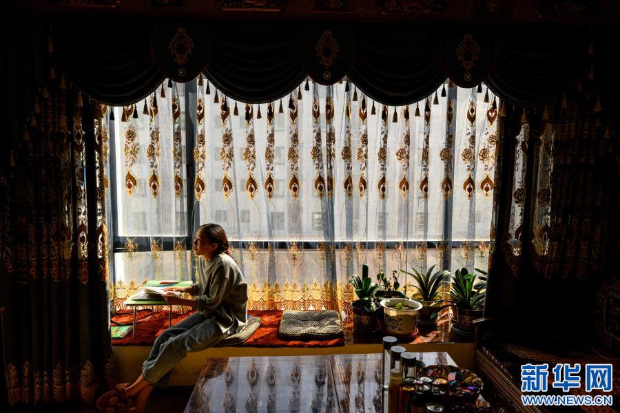 2月10日,在西藏自治區(qū)山南市乃東區(qū),格央在家中研讀文學(xué)理論書籍。新華社記者 劉金海 攝